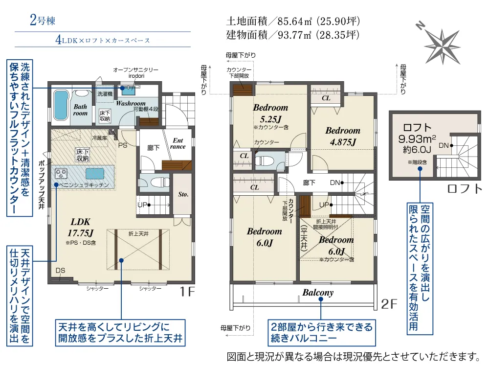 | 土地面積 | 85.64~87.14m² | 建物面積 | 86.53~93.77㎡ |