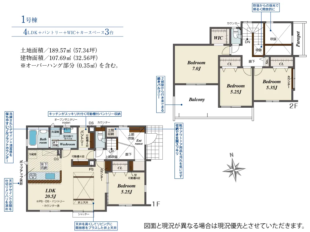 - 建物面積にオーバーハング部分0.35m2を含む。