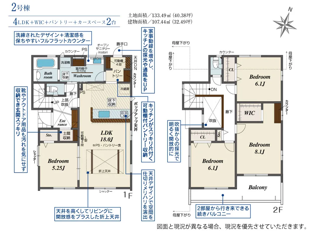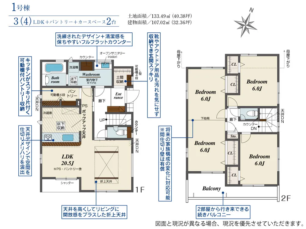 | 土地面積 | 133.49m² | 建物面積 | 107.02~107.44㎡ |