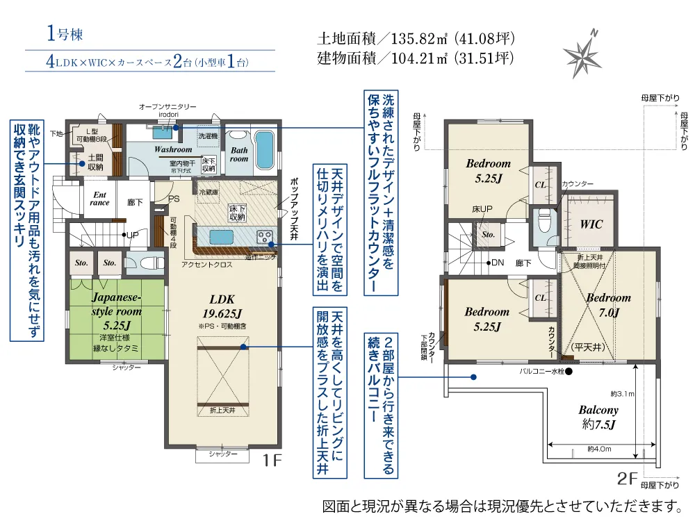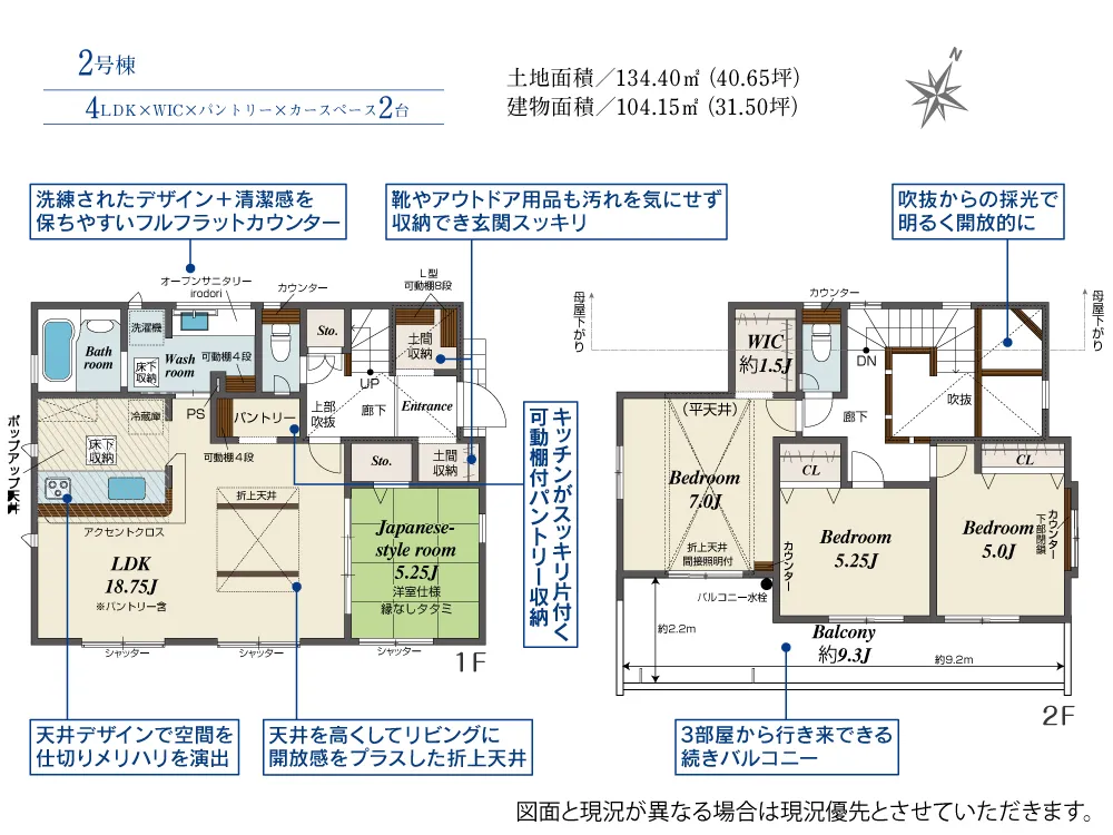 | 土地面積 | 134.40~135.82m² | 建物面積 | 104.15~104.21㎡ |