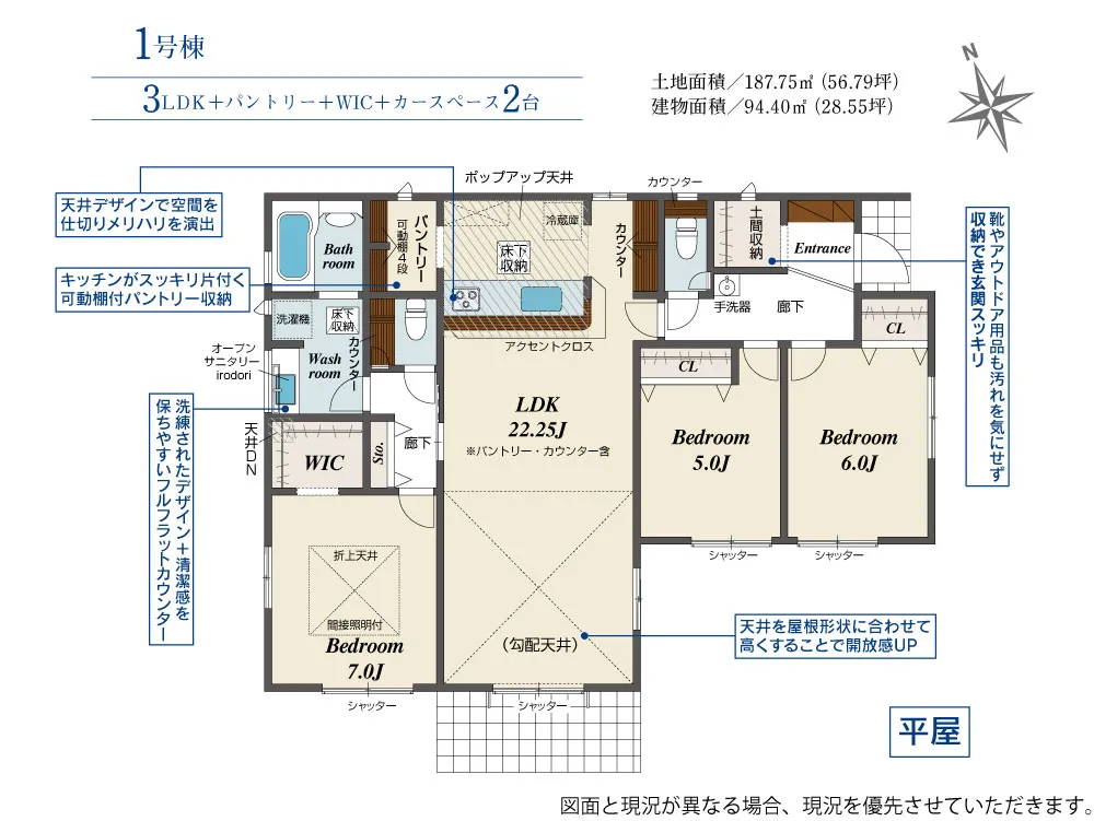 | 土地面積 | 187.75m² | 建物面積 | 94.40㎡ |