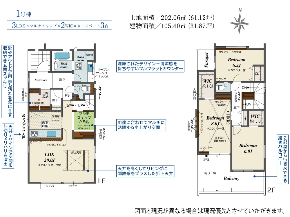| 建物面積 | 105.40~107.59㎡ | ||