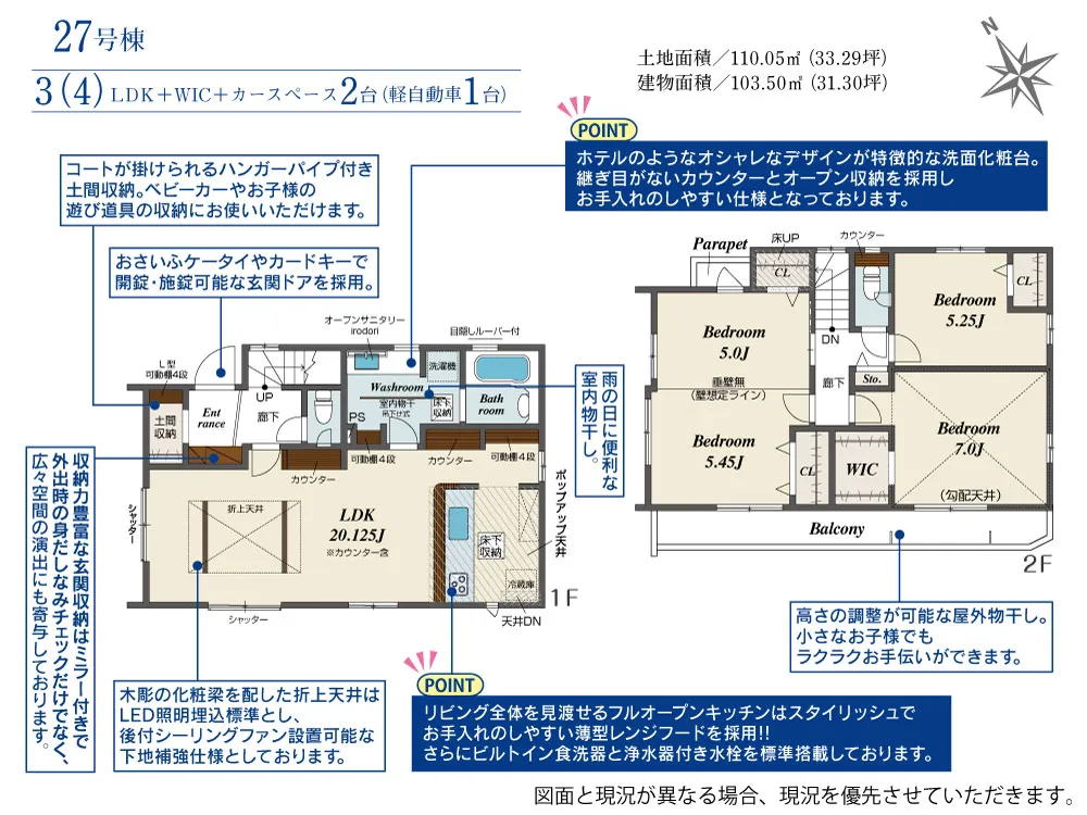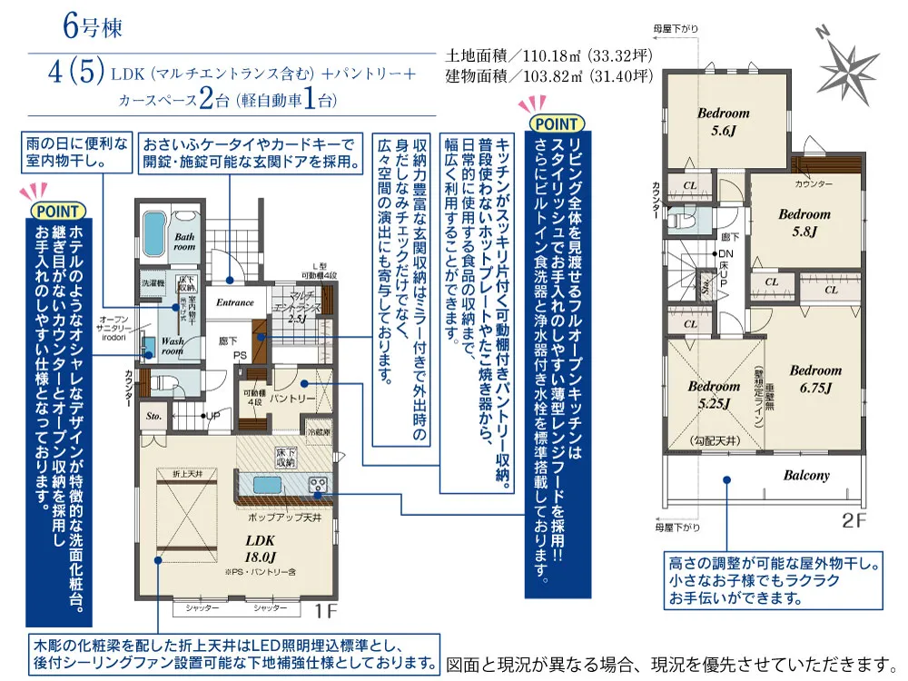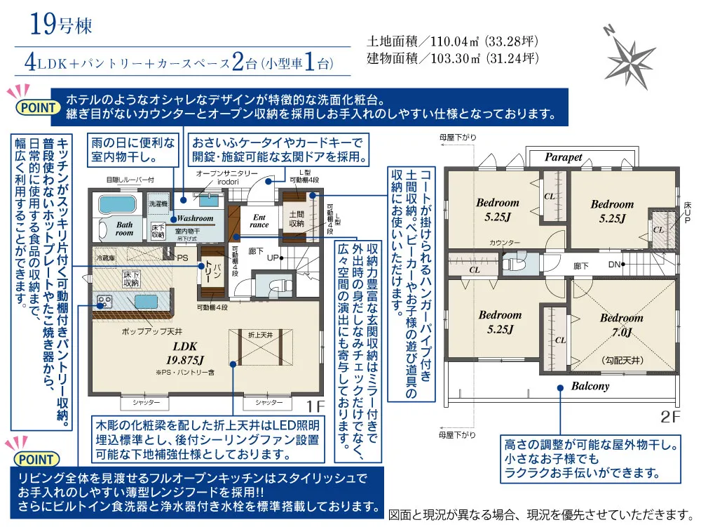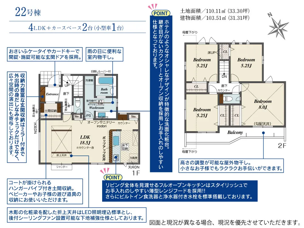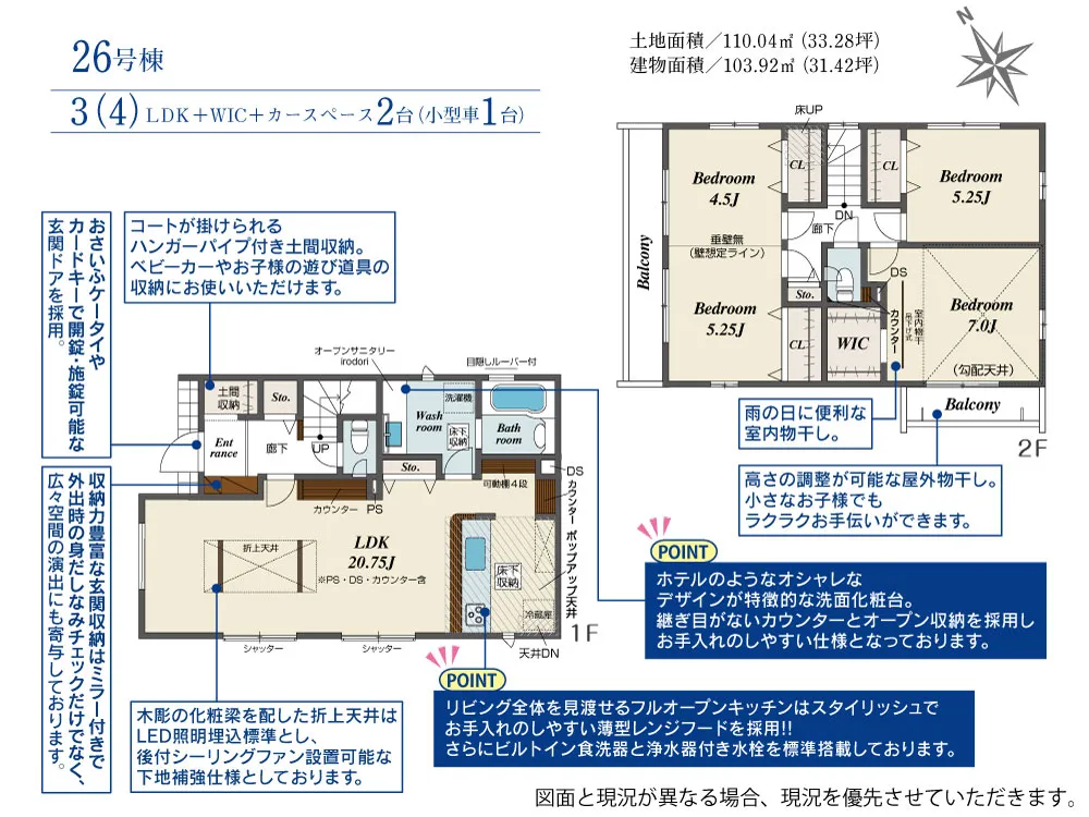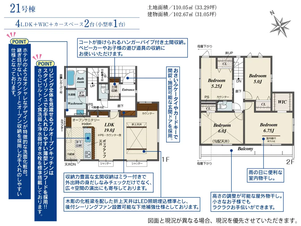 | 土地面積 | 110.04~114.57m² | 建物面積 | 102.67~107.44㎡ |