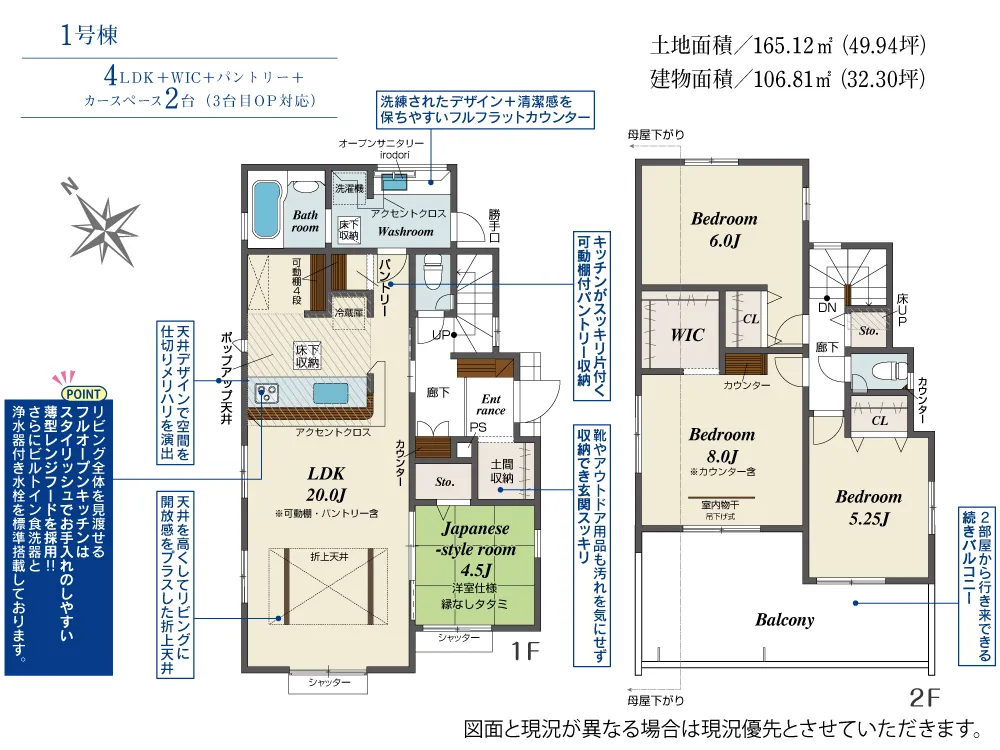 | 土地面積 | 165.12m² | 建物面積 | 106.81㎡ |