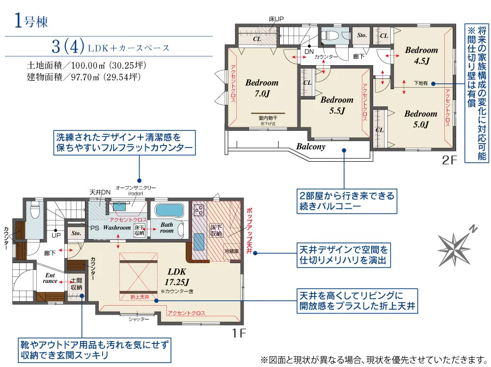 | 土地面積 | 100.00~105.70m² | 建物面積 | 97.70~108.06㎡ |