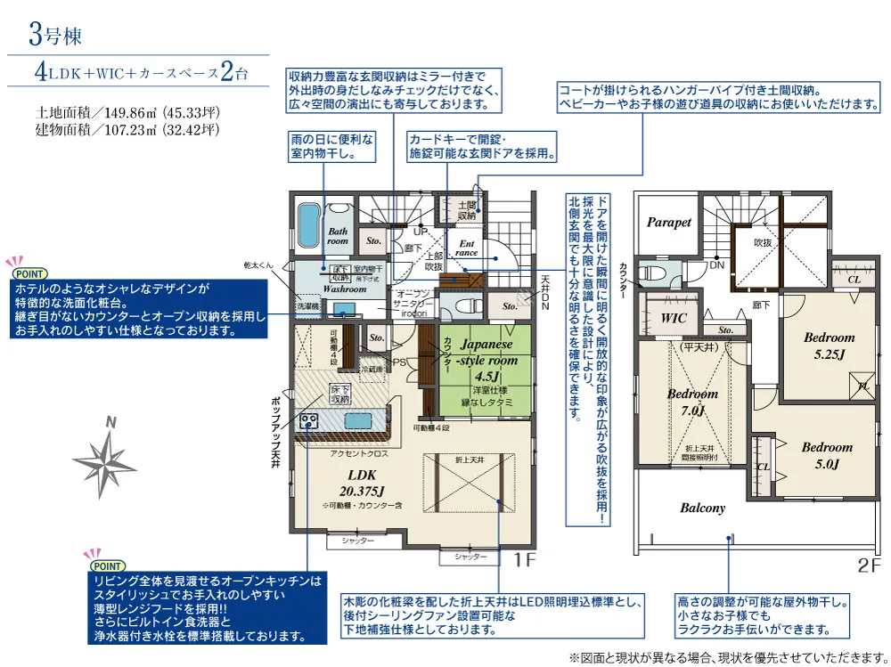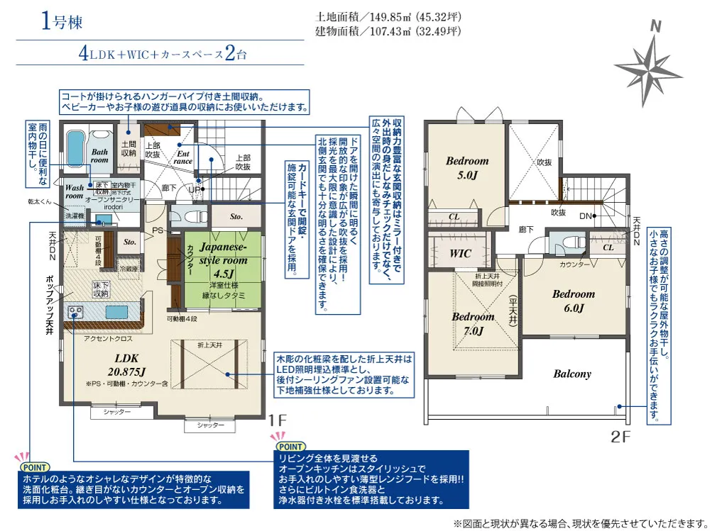 | 土地面積 | 149.85~149.86m² | 建物面積 | 107.23~107.43㎡ |