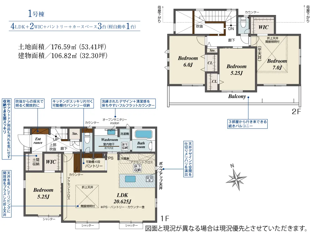 | 土地面積 | 176.59m² | 建物面積 | 106.82㎡ |