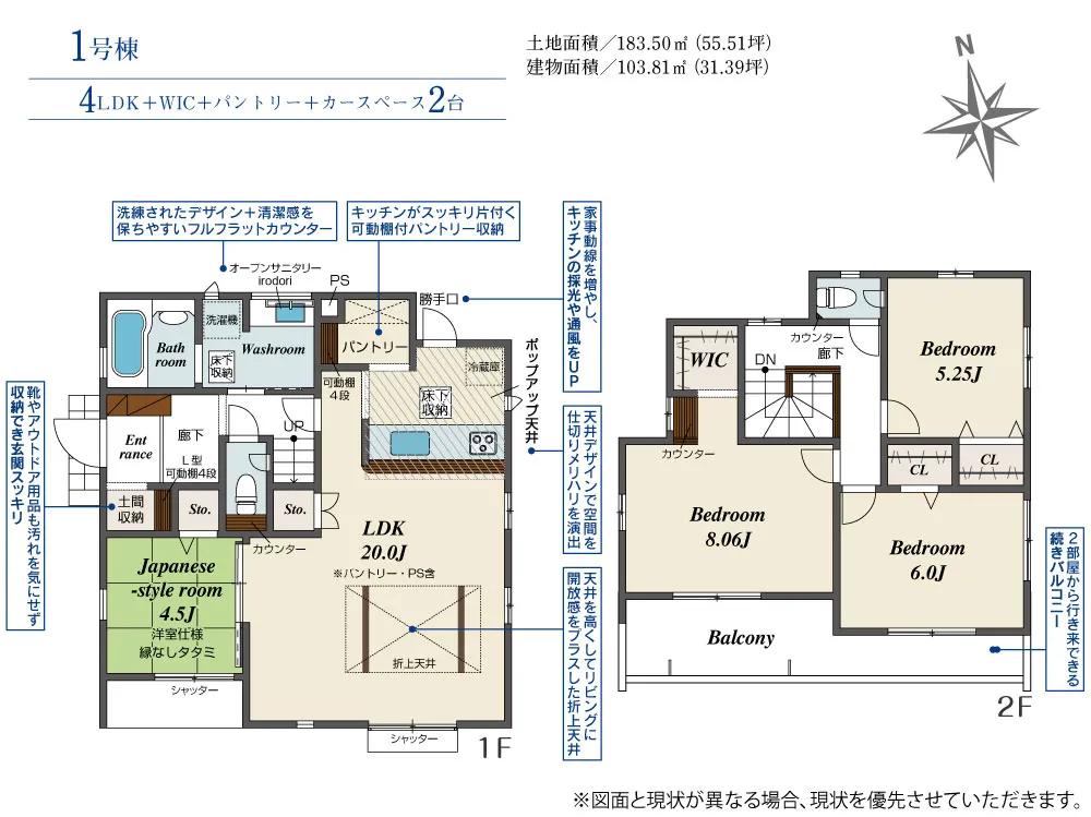 | 土地面積 | 183.50m² | 建物面積 | 103.81㎡ |