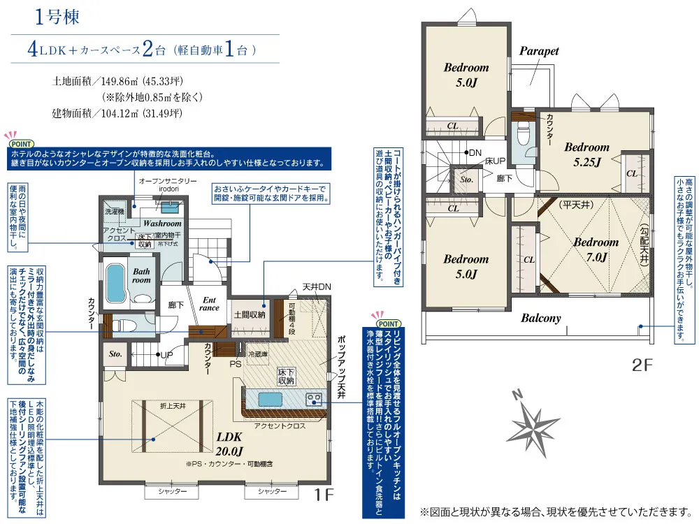 | 土地面積 | 149.86m² | 建物面積 | 104.12㎡ |