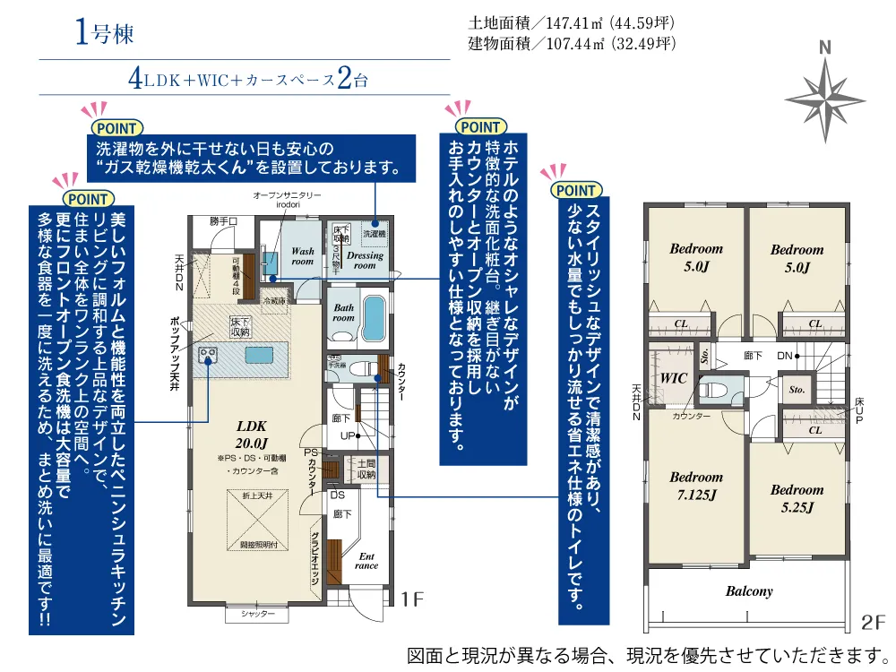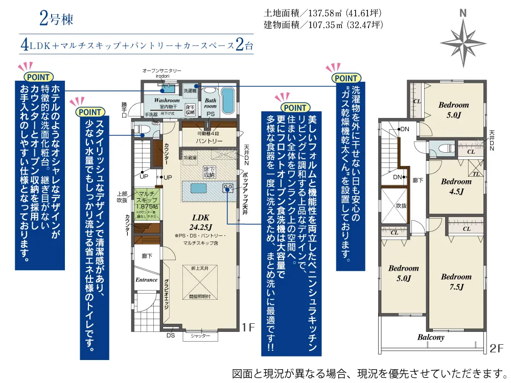 | 土地面積 | 137.58~147.41m² | 建物面積 | 107.35~107.44㎡ |