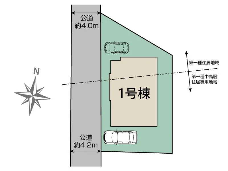 | 都市計画 | 市街化区域 | 用途地域 | 第一種住居地域・第一種中高層住居専用地域 |
