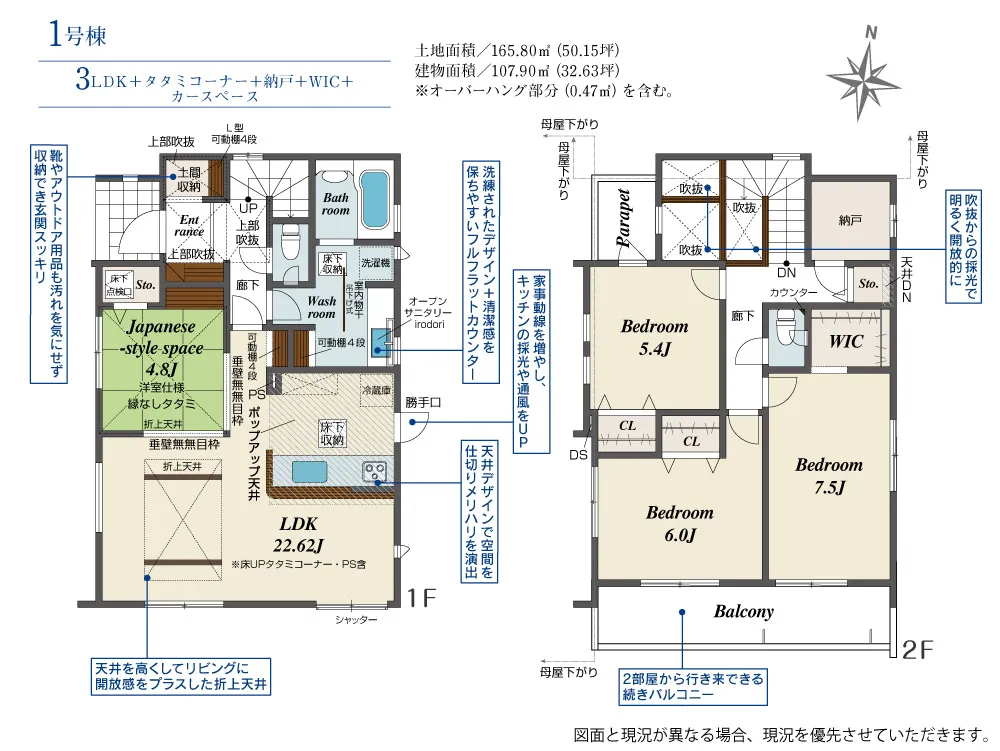 - 建物面積にオーバーハング部分(0.47m2)を含む。