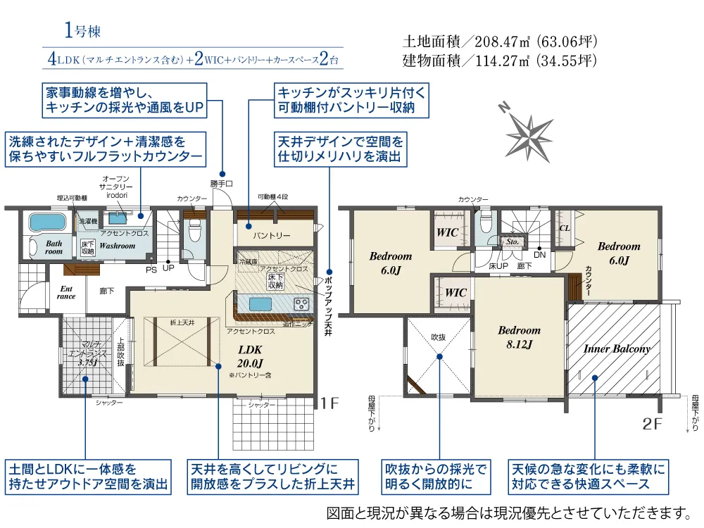 | 土地面積 | 208.47~208.48m² | 建物面積 | 108.26~114.27㎡ |