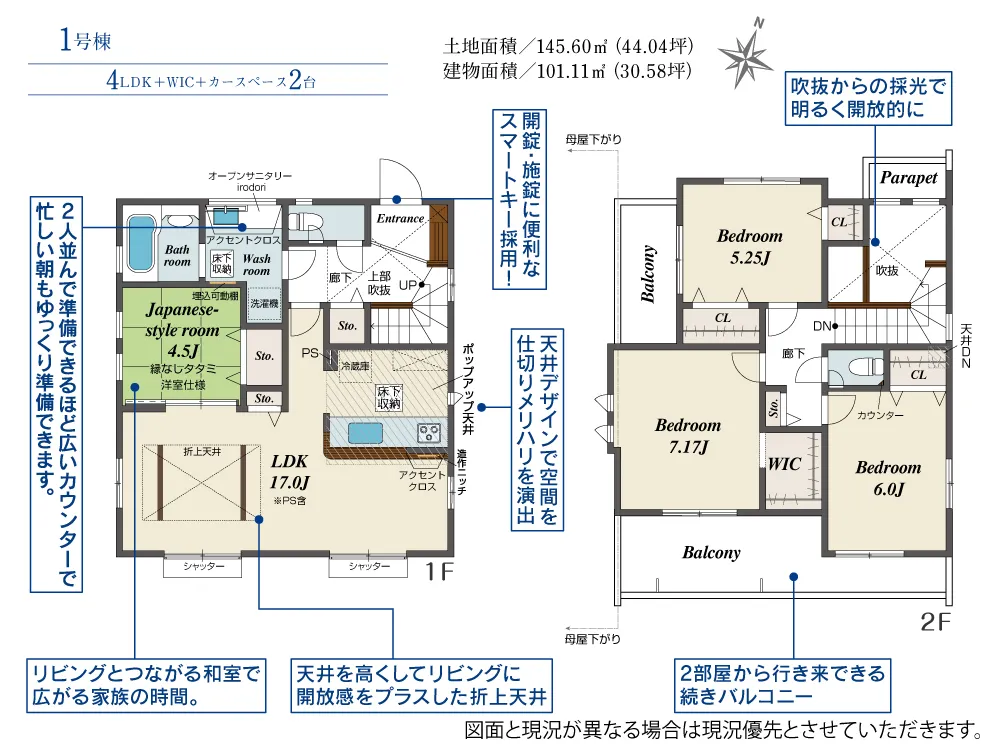 | 土地面積 | 145.60m² | 建物面積 | 101.11㎡ |