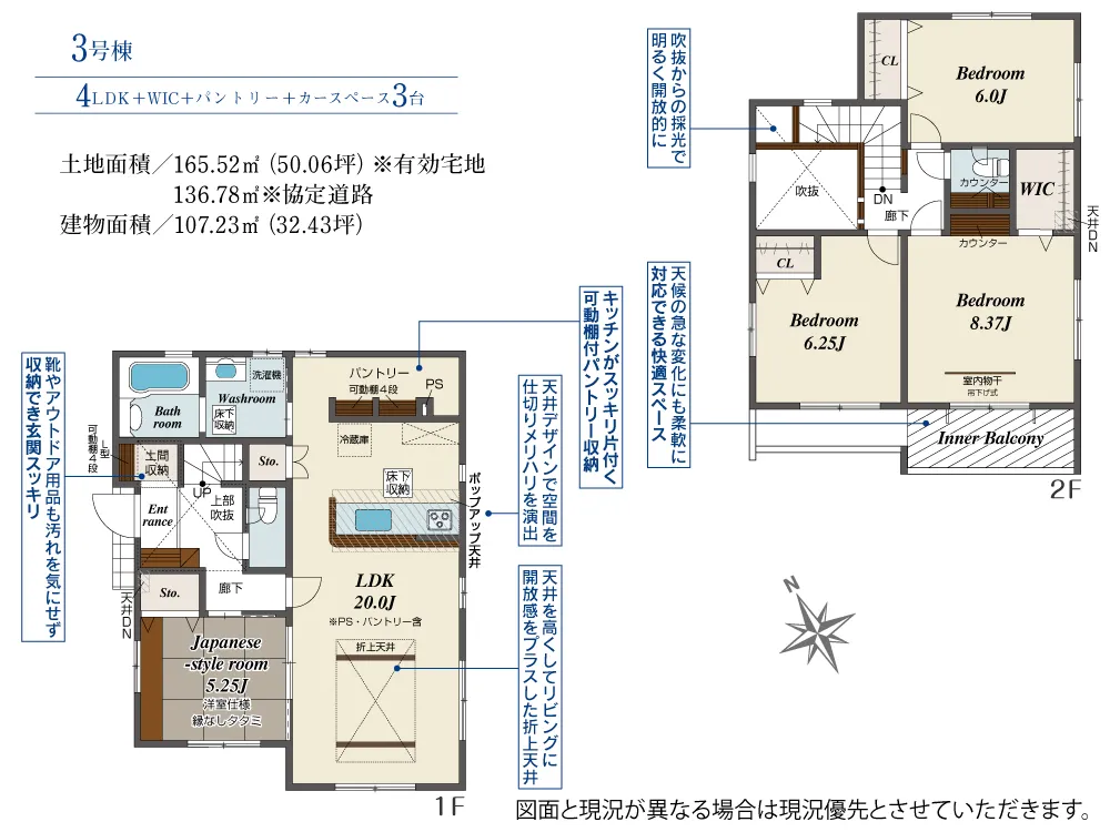 | 土地面積 | 165.46~165.71m² | 建物面積 | 107.23~107.85㎡ |