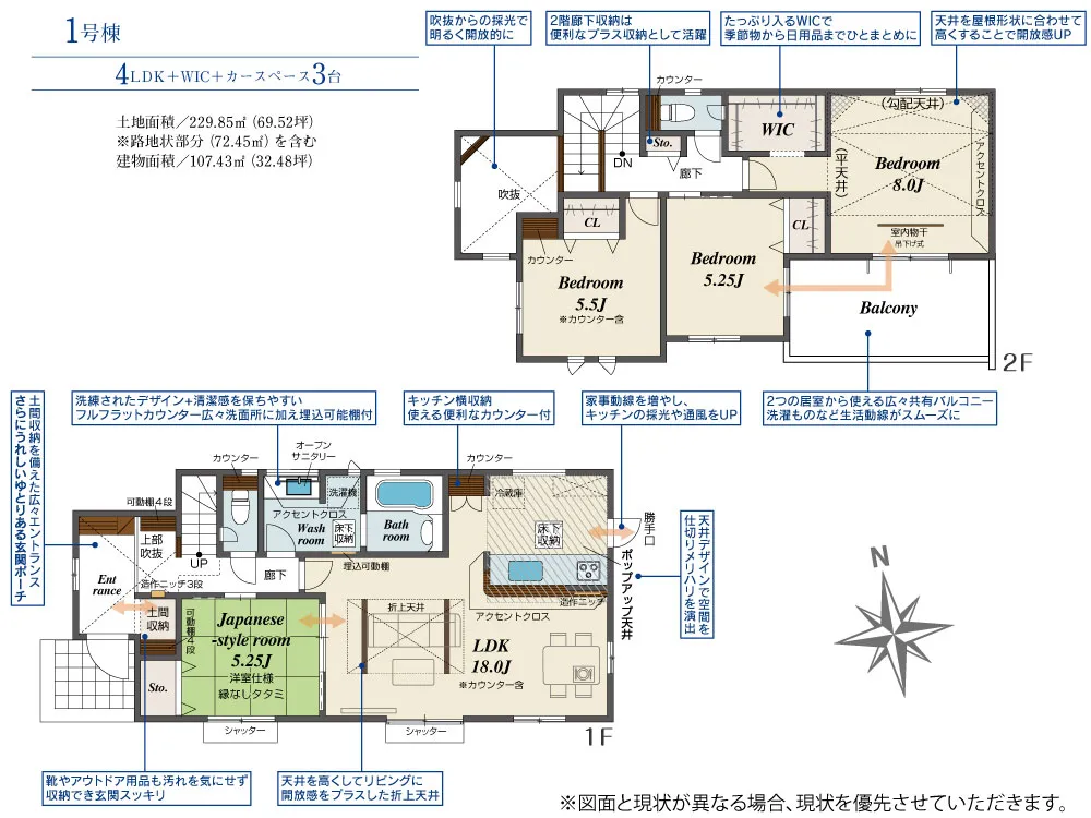 | 土地面積 | 229.85m² | 建物面積 | 107.43㎡ |