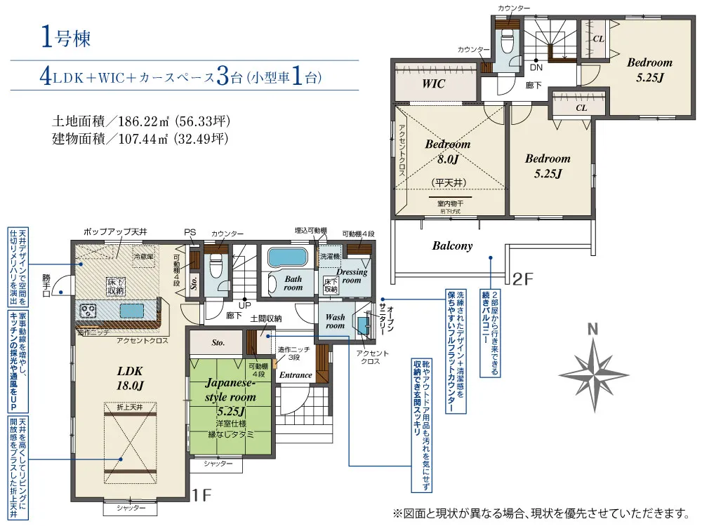 | 土地面積 | 186.22m² | 建物面積 | 107.44㎡ |