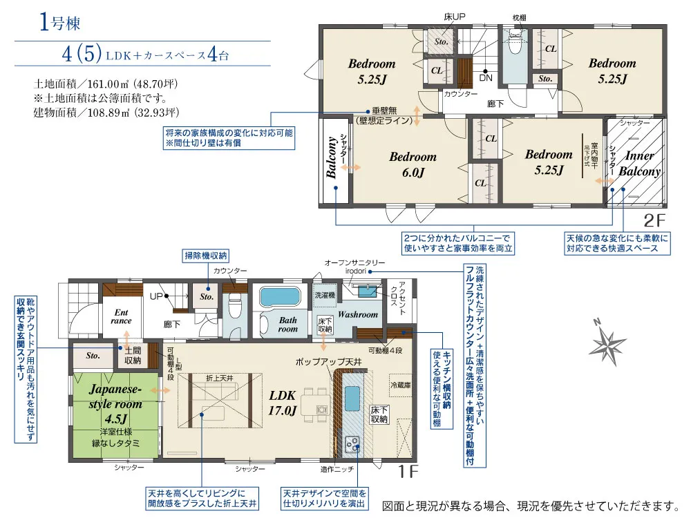 | 土地面積 | 161.00m² | 建物面積 | 108.89㎡ |