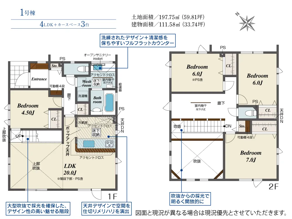 | 土地面積 | 197.75~200.00m² | 建物面積 | 111.37~111.58㎡ |