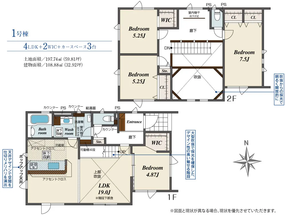 | 土地面積 | 197.74m² | 建物面積 | 108.88㎡ |