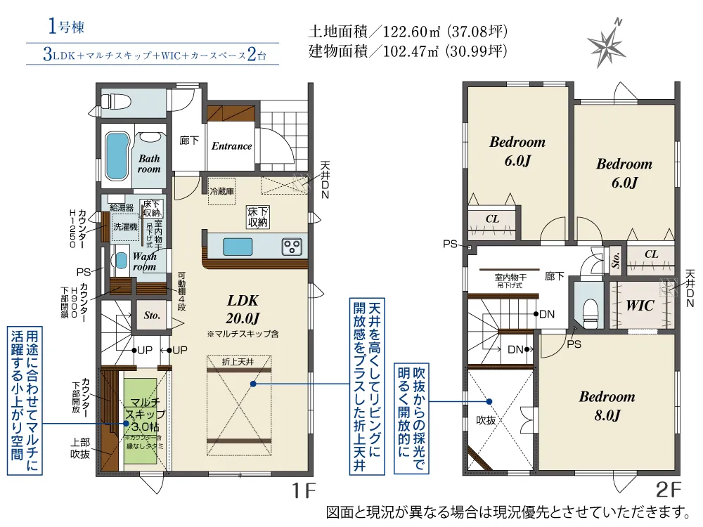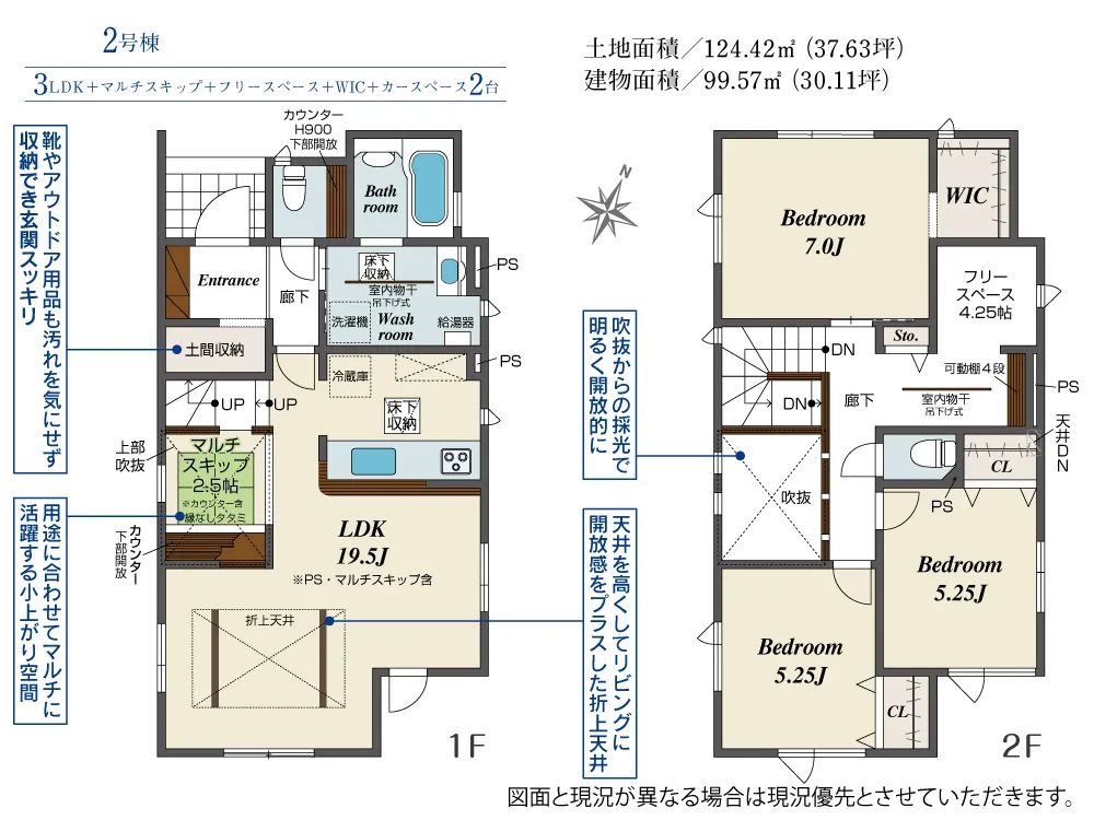 | 土地面積 | 122.60~124.42m² | 建物面積 | 99.57~102.47㎡ |
