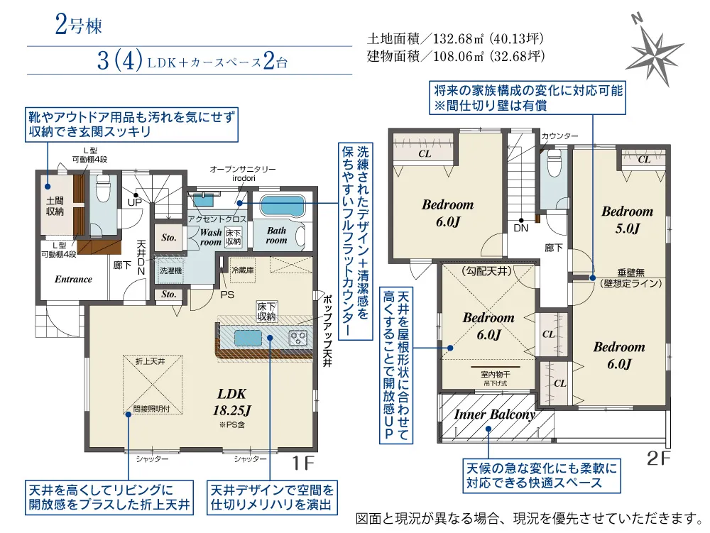 | 土地面積 | 132.68m² | 建物面積 | 101.85~108.06㎡ |