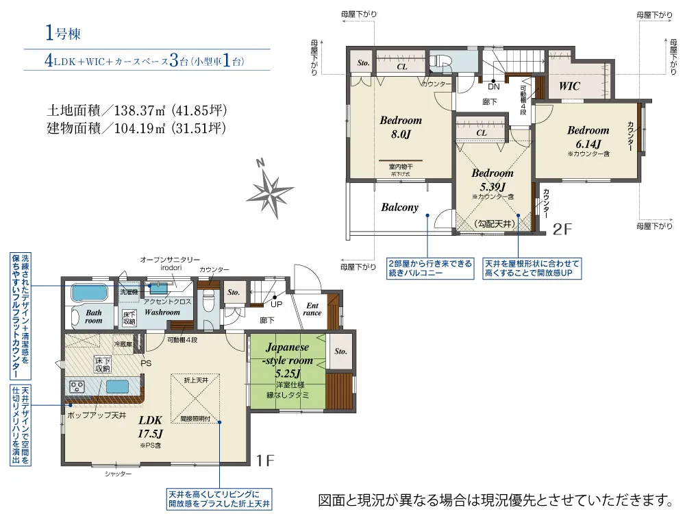 | 土地面積 | 138.37m² | 建物面積 | 104.19㎡ |