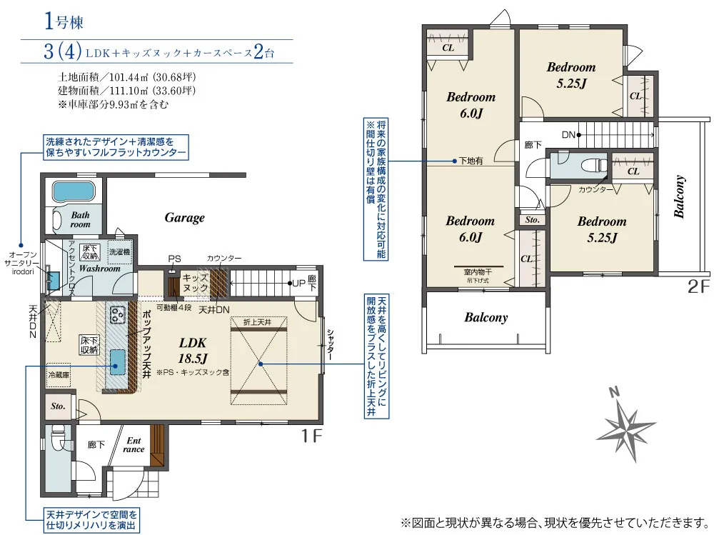 | 土地面積 | 101.44m² | 建物面積 | 111.10㎡ |