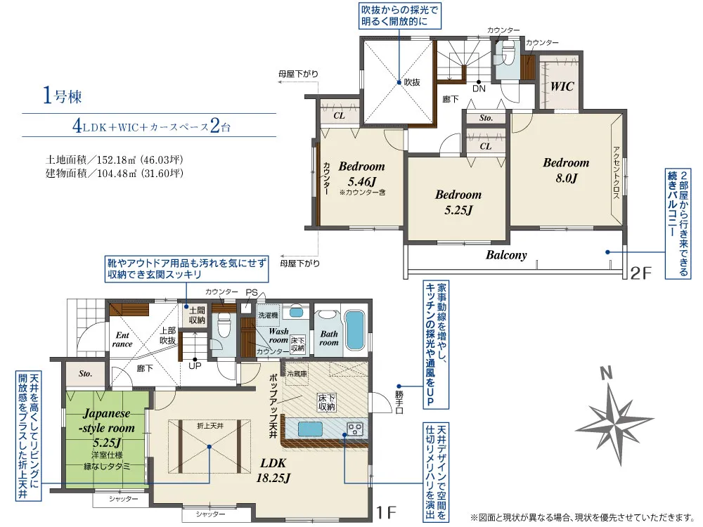 | 土地面積 | 152.18m² | 建物面積 | 104.48㎡ |