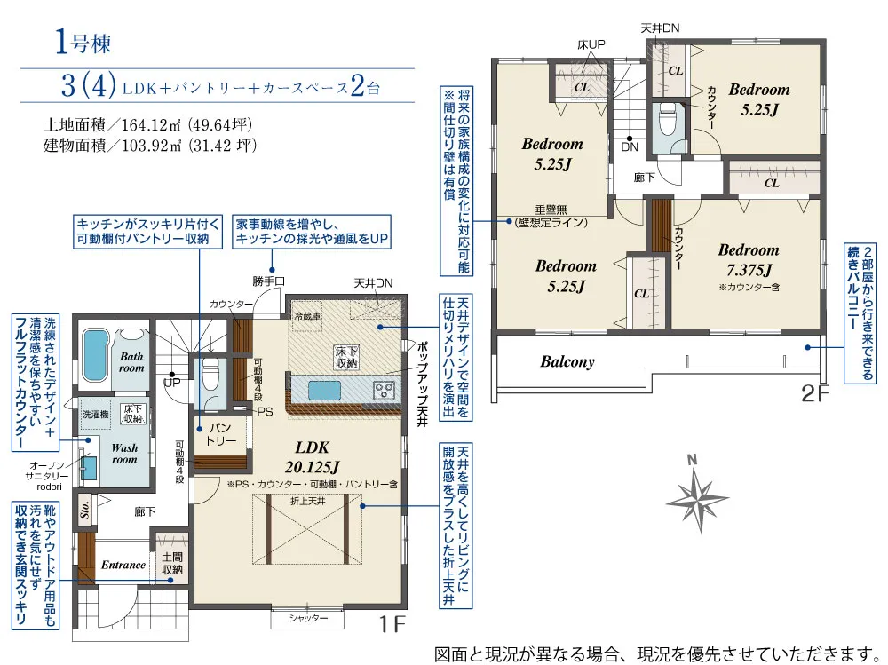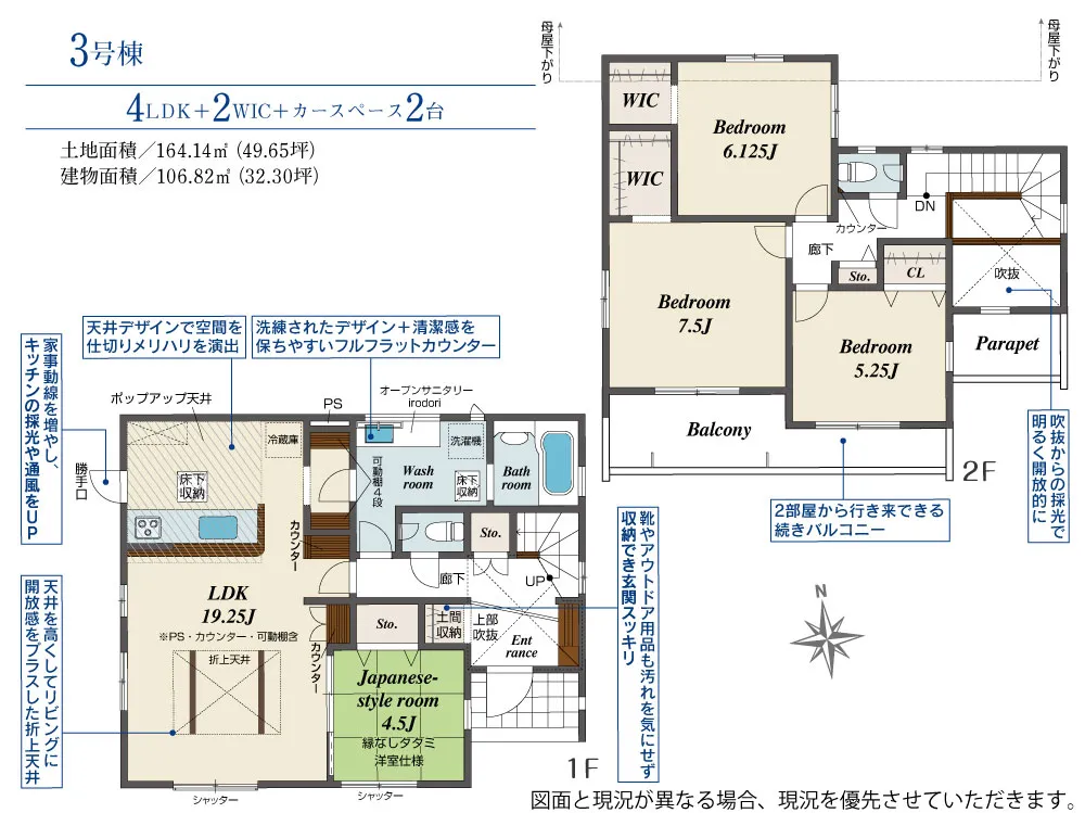 | 土地面積 | 164.12~164.15m² | 建物面積 | 94.08~106.82㎡ |