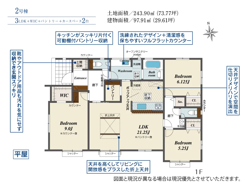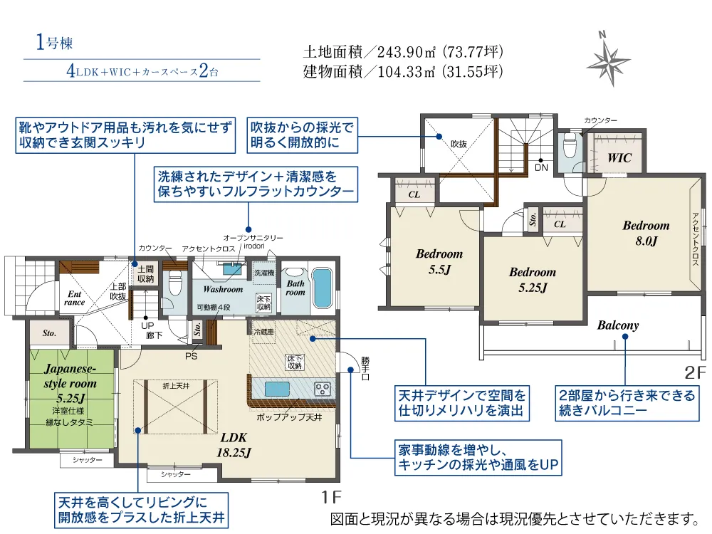 | 土地面積 | 243.90m² | 建物面積 | 97.91~104.33㎡ |