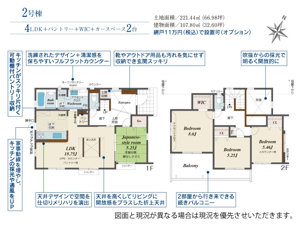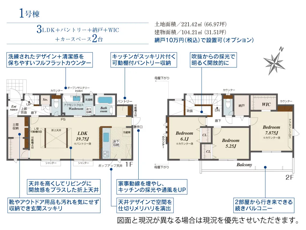 | 土地面積 | 221.42~221.44m² | 建物面積 | 104.21~107.80㎡ |