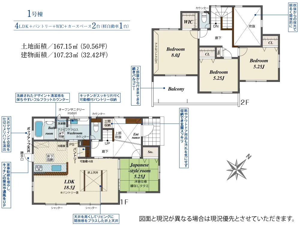 | 土地面積 | 167.15m² | 建物面積 | 107.23㎡ |