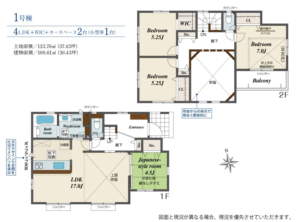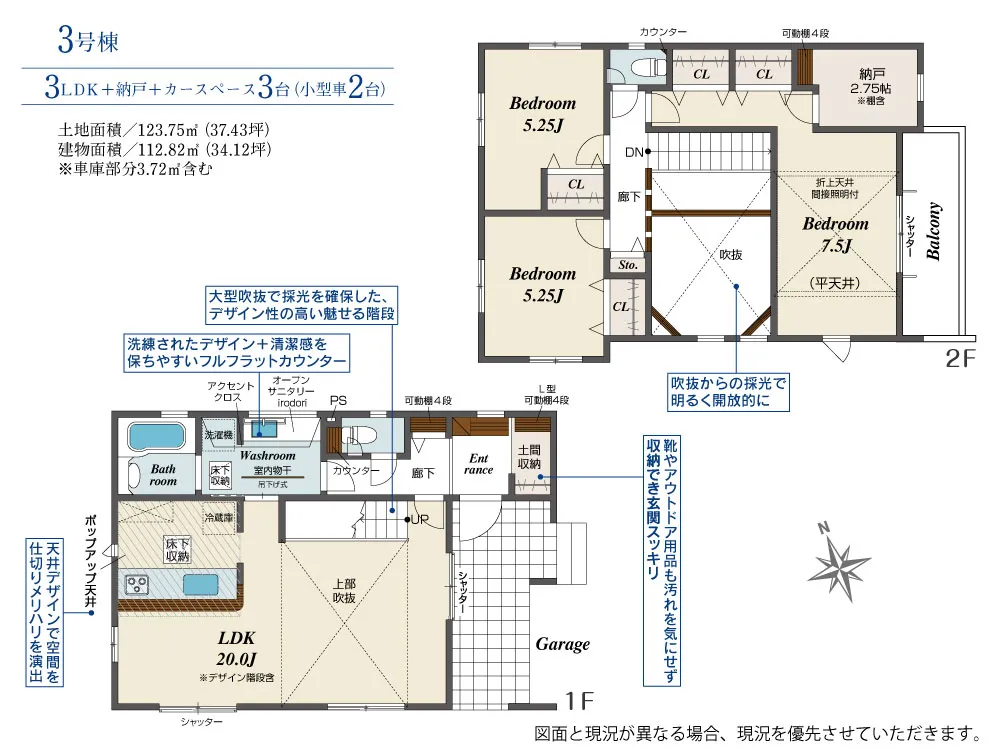 | 土地面積 | 123.75~123.76m² | 建物面積 | 100.61~112.82㎡ |