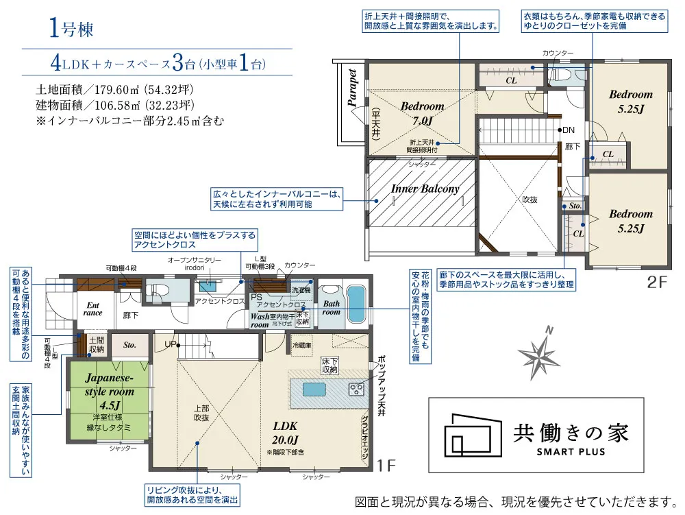 | 土地面積 | 179.60m² | 建物面積 | 106.58㎡ |