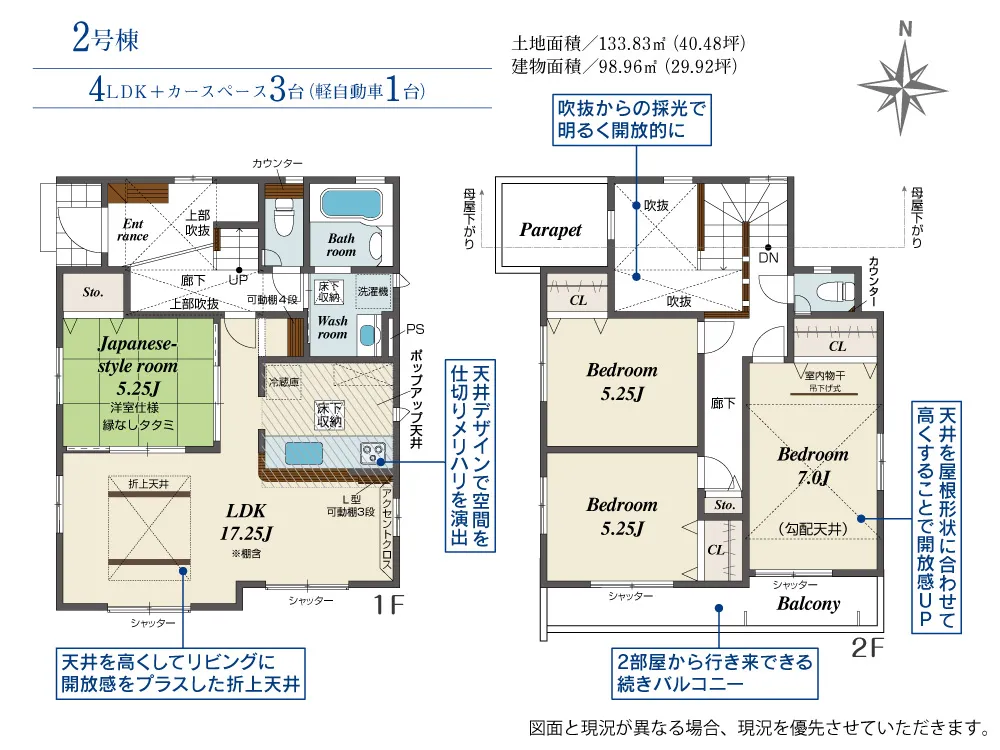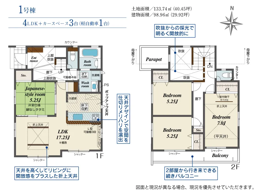 | 土地面積 | 133.74~133.83m² | 建物面積 | 98.96㎡ |