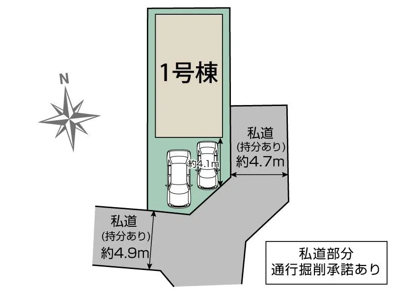 【私道持分】243.06㎡×1/11(通行掘削承諾あり) |