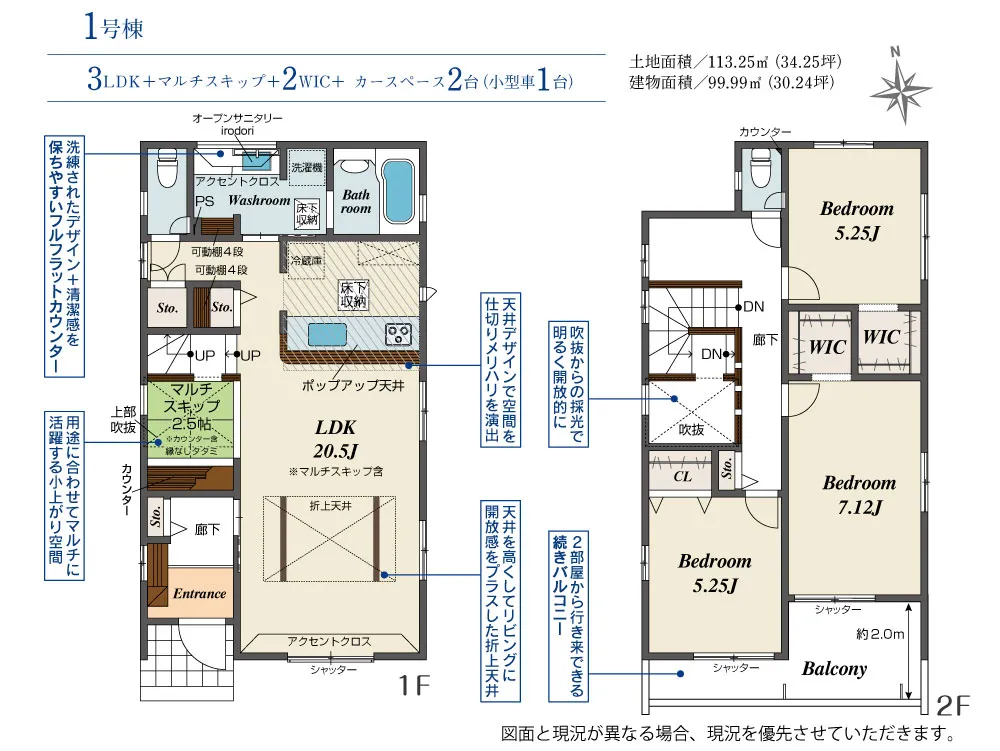 | 土地面積 | 113.25m² | 建物面積 | 99.99㎡ |