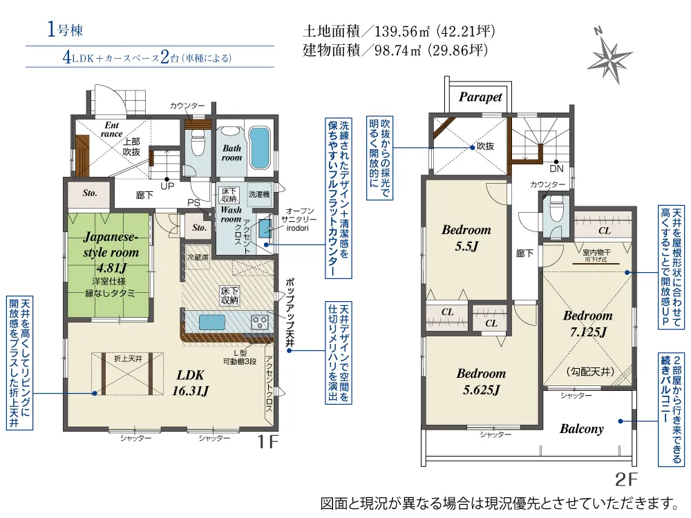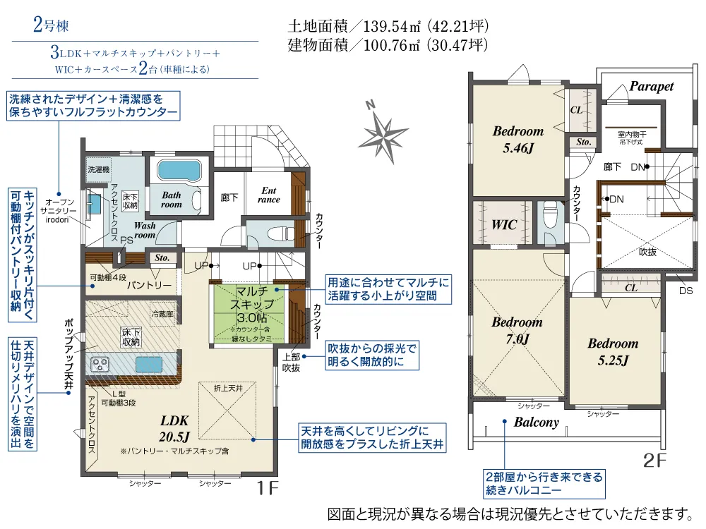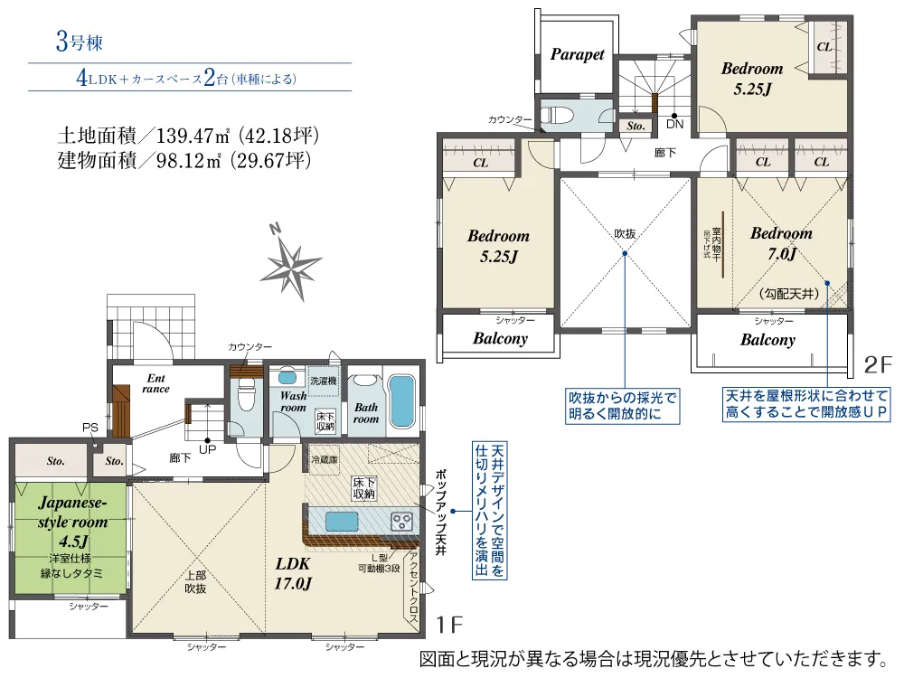 | 土地面積 | 139.47~139.56m² | 建物面積 | 98.12~100.76㎡ |