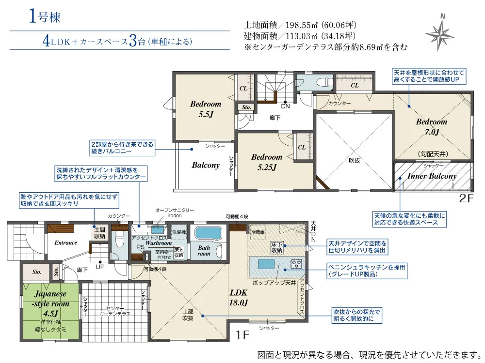 | 土地面積 | 198.55m² | 建物面積 | 113.03㎡ |