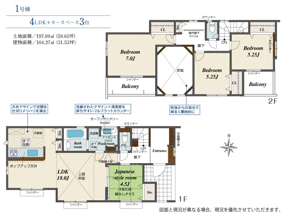 | 土地面積 | 197.09m² | 建物面積 | 104.27㎡ |