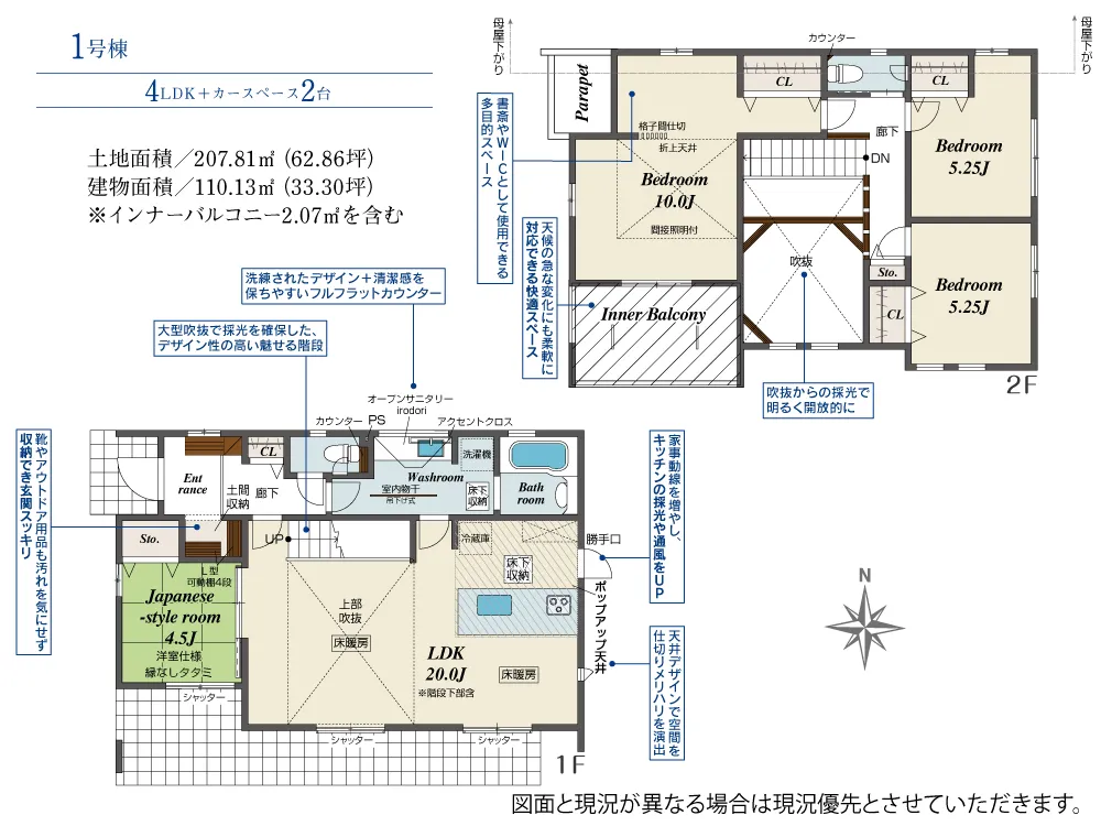 - 建築面積にインナーバルコニー2.07m2を含む