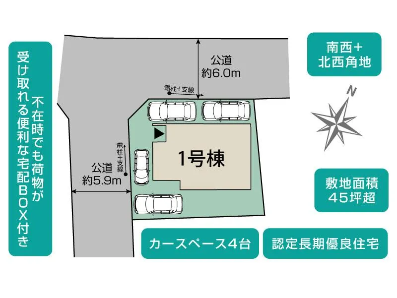 | 接道 | 北西6.0m公道、南西5.9m公道 | ||