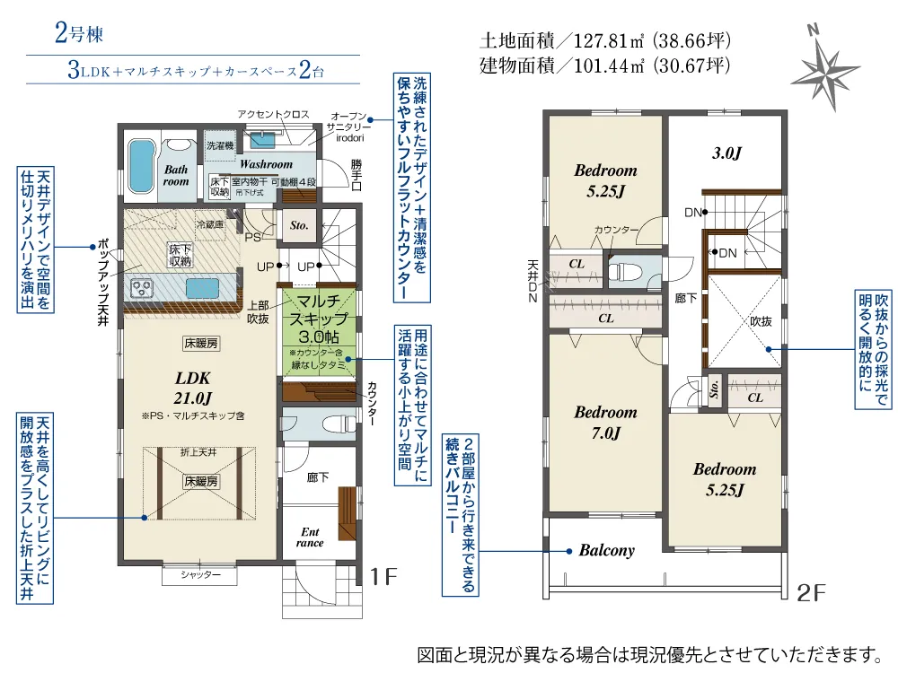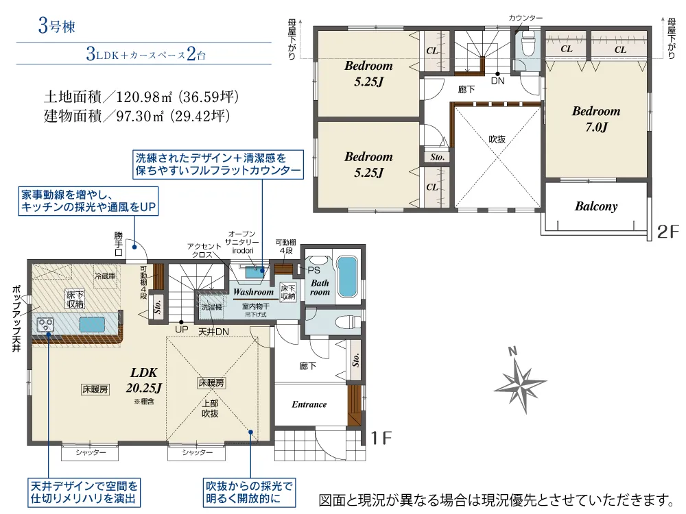 | 土地面積 | 120.98~127.81m² | 建物面積 | 97.30~101.44㎡ |