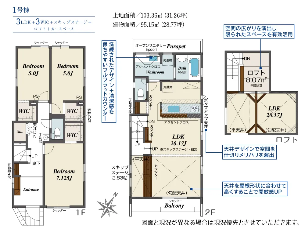 | 土地面積 | 103.36~112.10m² | 建物面積 | 95.15~98.96㎡ |