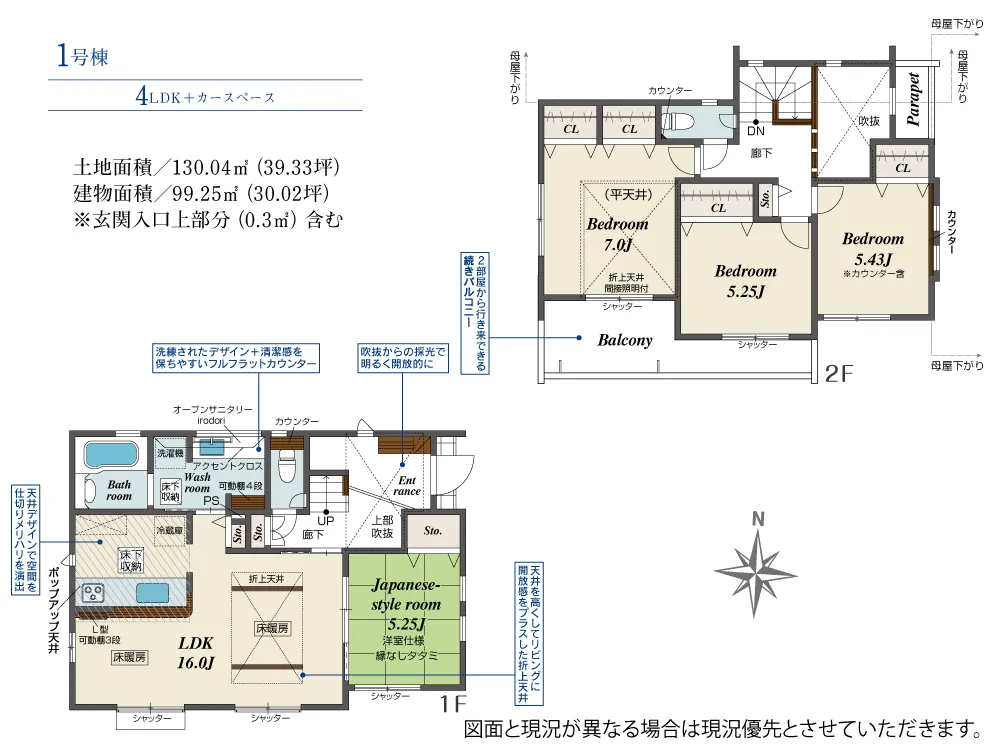 | 土地面積 | 130.04m² | 建物面積 | 99.25㎡ |