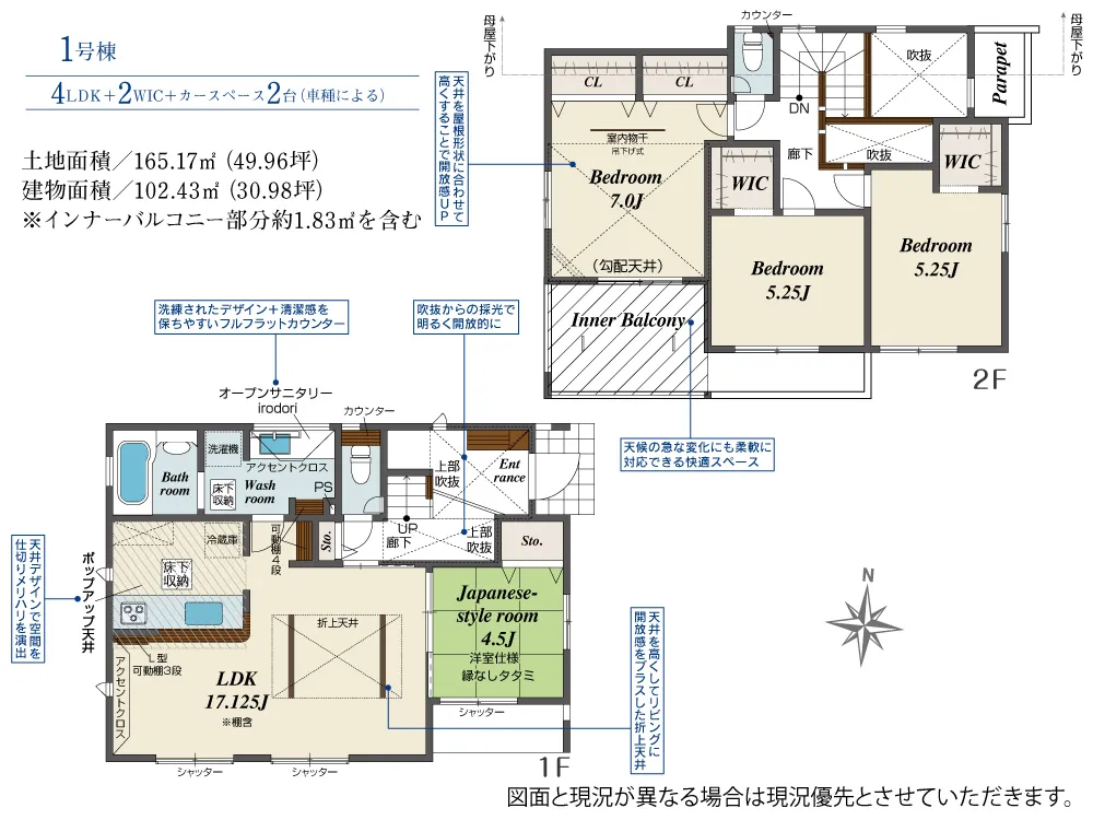 ※建物面積にインナーバルコニー部分約1.83m2を含む