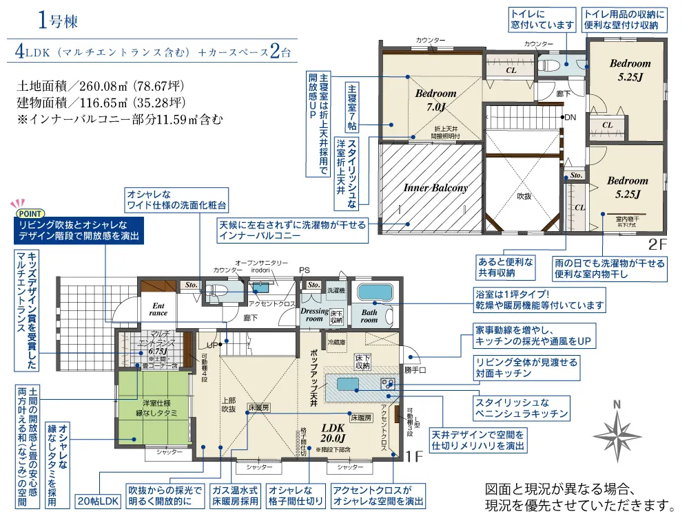 - 建物面積にインナーバルコニー部分11.59m2含む