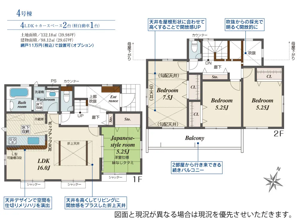 | 土地面積 | 130.72~132.18m² | 建物面積 | 98.12~98.95㎡ |