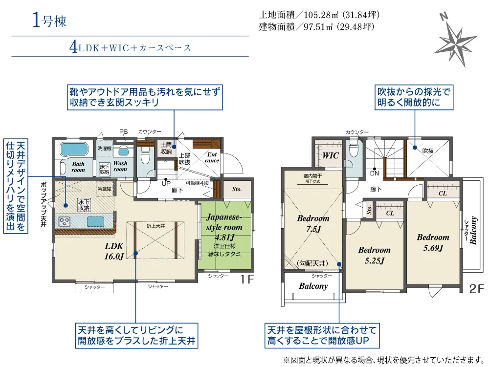 | 土地面積 | 105.27~105.28m² | 建物面積 | 95.11~97.51㎡ |